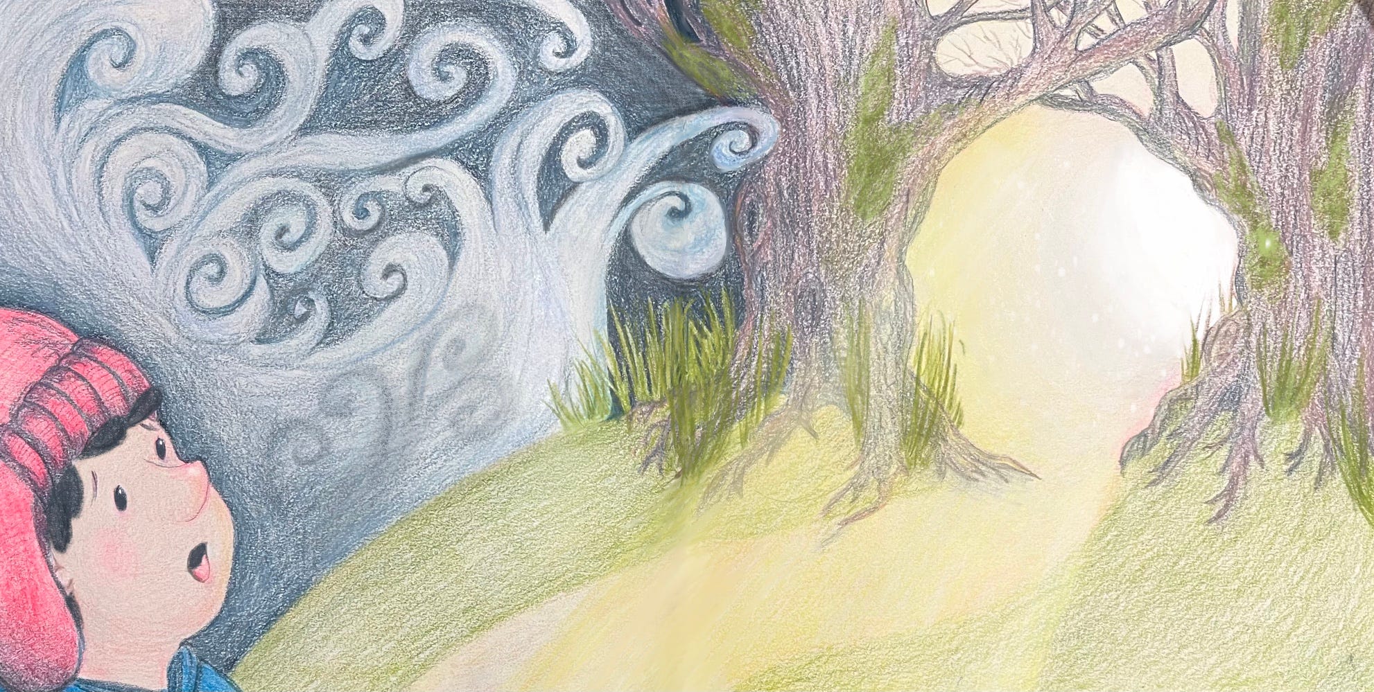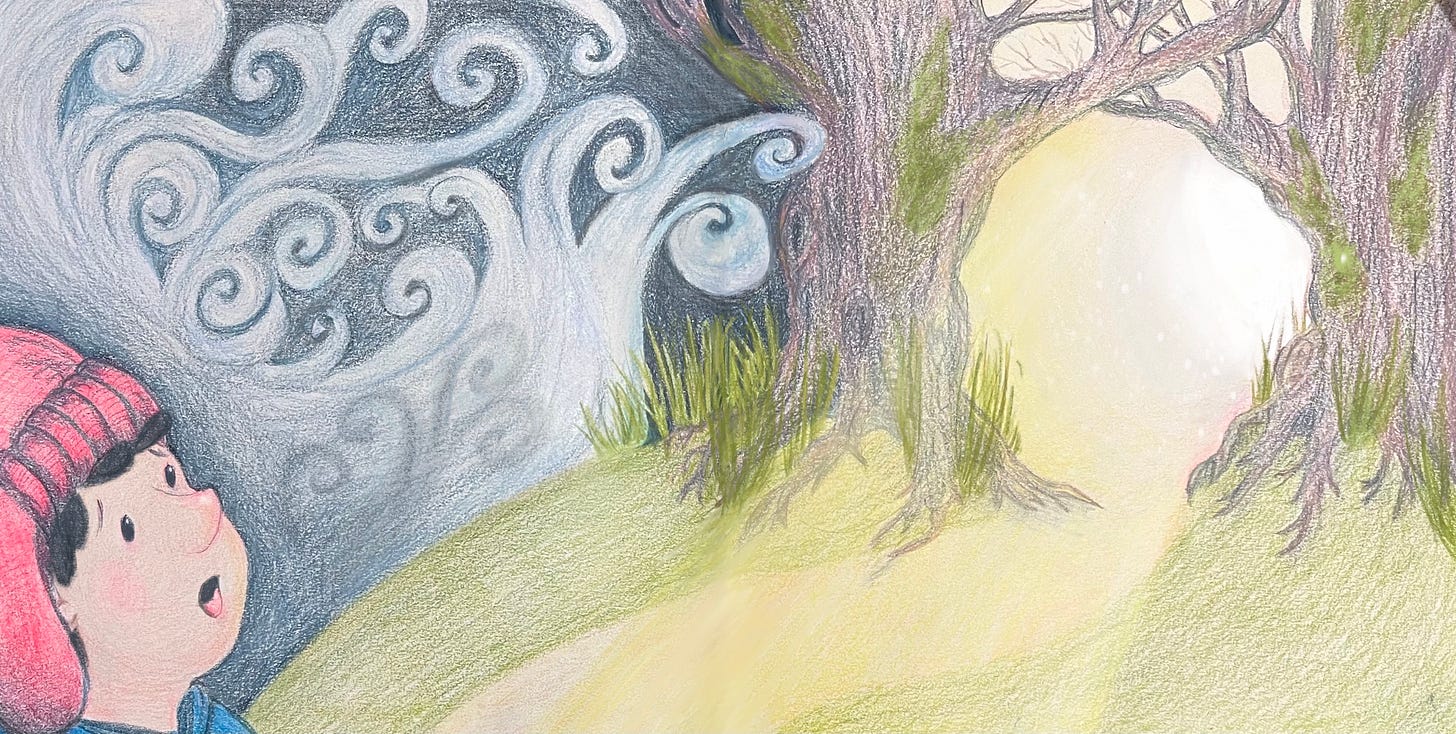 An otherworldly light streamed through the gap created by the ancient trees - a gateway to The Beyond.